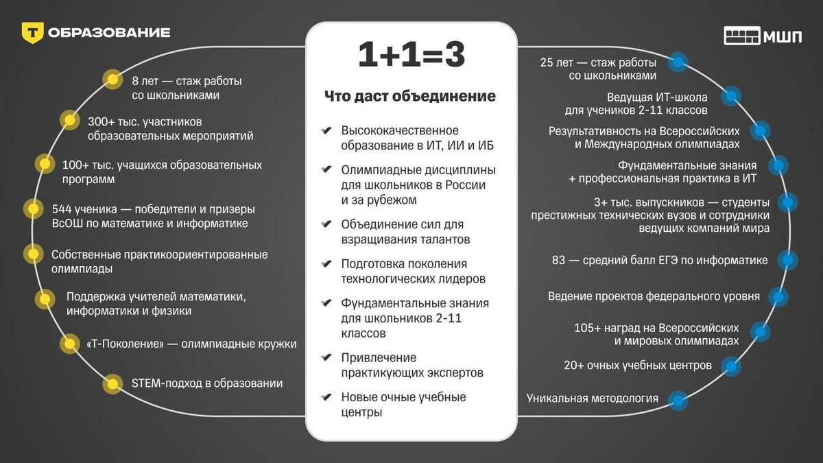 Московская школа программистов стала частью экосистемы Т-образования группы Т-Технологий (Т-Банк). Школа сохранит преподавательский состав, который 25 лет готовит победителей всероссийских и международных олимпиад. Открытие новых учебных центров планируется в регионах, где действуют ИТ-хабы Т-Технологий. В образовательных программах появятся преподаватели-практики из бигтеха. Школьники из всех регионов России получат расширенные возможности для системного ИТ-образования. https://dzen.ru/id/5c0e38ff46ef5c00aaa80527