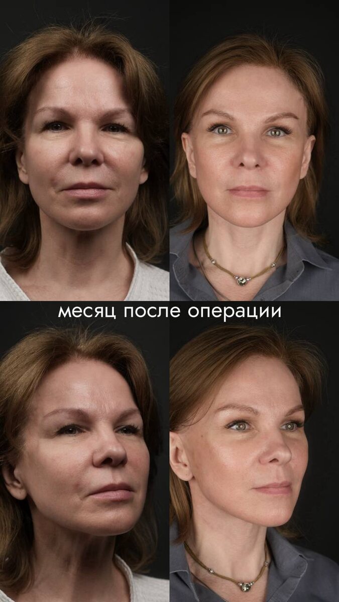 Сохранное лицо. Хорошая генетика и грамотная косметология в анамнезе. Это идеальный сценарий для превентивной хирургии. Когда пациент приходит вовремя, с первыми, только намечающимися изменениями (брыли, лёгкое провисание средней зоны), а не с их последствиями. Запрос был не на «вау-эффект», а на коррекцию тенденций. Мы выполнили комплексный фулфейс-лифтинг (лобно-височный лифтинг + SMAS-подтяжка средней и нижней трети), чтобы вернуть тканям анатомически правильное положение, не меняя черт. Почему так важно? Потому что цель — не «омолодить на 20 лет», а отодвинуть возрастные изменения надолго, сохранив естественность и индивидуальность. Пациент должен стать свежее, а не другим. На фото — динамика заживления рубцов. 1 месяц: Идёт активный процесс ремоделирования. Рубцы могут быть ярче, есть отёчность. 2 месяца: Отёк значительно уменьшается, цвет рубца начинает выравниваться, становясь менее заметным. Это наглядный процесс того, как организм адаптируется. Работа с «сохранным» лицо