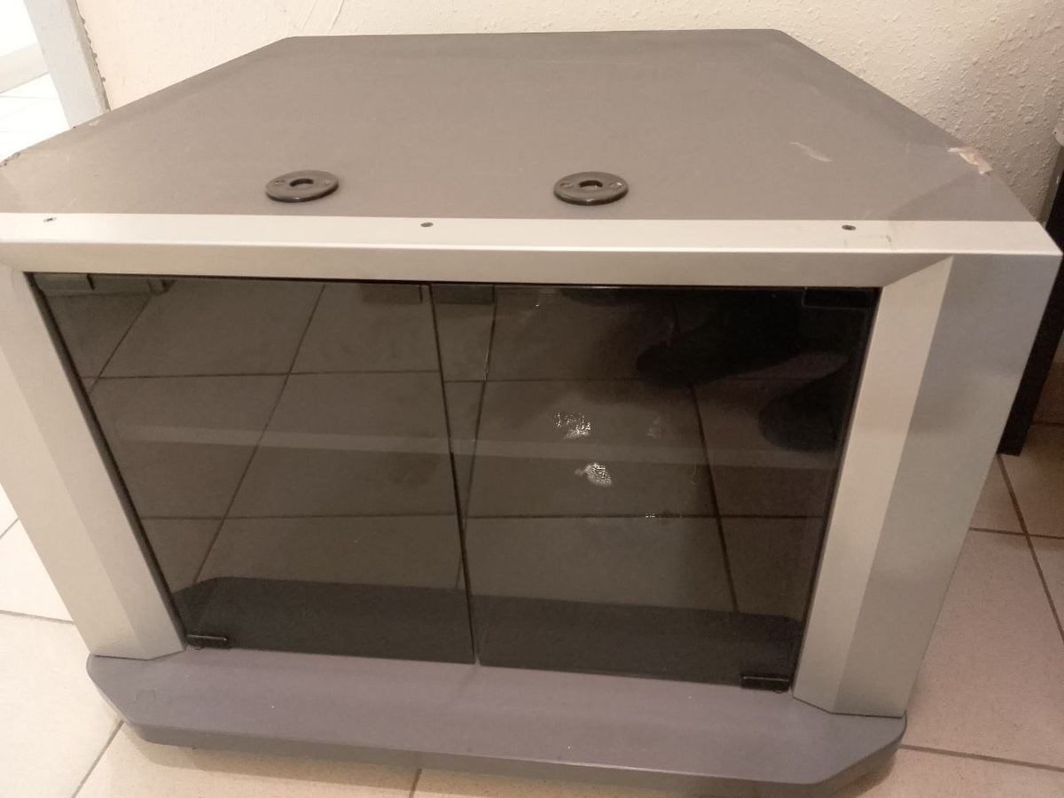 Отдам даром срочно тумбочку на колесиках со стеклянными дверцами.