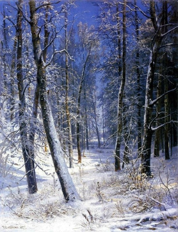 : "Зима в лесу. Иней" Иван Шишкин. 1871 год Зимний пейзаж" Андрей Шильдер. 1918 год "Зимний вечер у ручья" Станислав Брусилов. 2008 год "Зимний вечер" Виталий Макаров