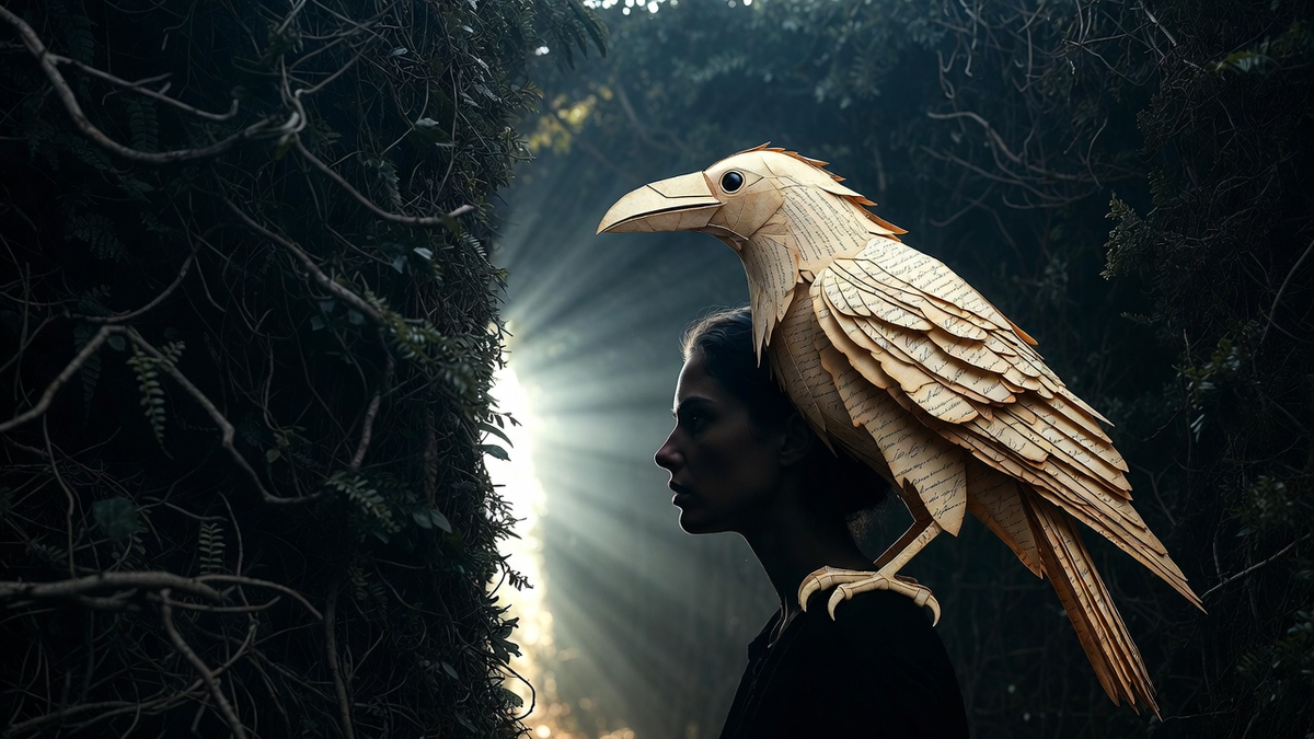 После кошмара с книгами на плече у меня села ворона из шевелящегося пергамента. Она указала путь вперёд • Сад Полуночных Чернил