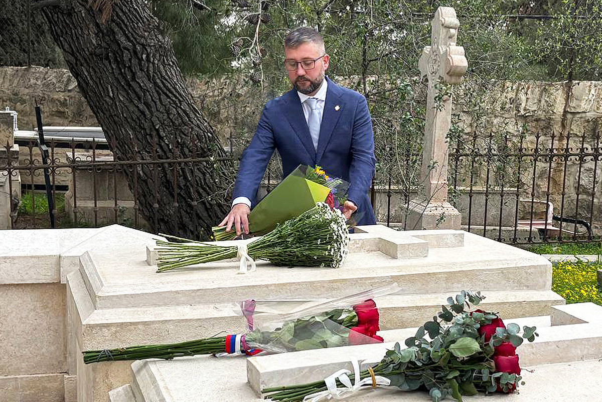 9 февраля на Сионском православном кладбище в Иерусалиме представители российских учреждений почтили память генерального консула Российской империи Василия Кожевникова. Сотрудники Посольства России, Императорского Православного Палестинского Общества, Русской духовной миссии и Русского дома в Израиле возложили цветы к его могиле по случаю Дня дипломатического работника. Императорское Православное Палестинское Общество представлял Руслан Ашурбейли – директор Фонда Антонина Капустина, созданного Председателем Совета ИППО в Государстве Израиль Игорем Ашурбейли для управления Сергиевским подворьем в Иерусалиме. Деятельность члена Совета ИППО Руслана Ашурбейли, связанная с восстановлением и сохранением русского исторического наследия на Святой Земле, – продолжение гуманитарной миссии, которую когда-то начинали дипломаты и члены ИППО. Возложив цветы от имени Совета, Руслан Ашурбейли в лице Василия Кожевникова отдал долг памяти всем представителям дипломатического корпуса, внёсшим вклад в раз