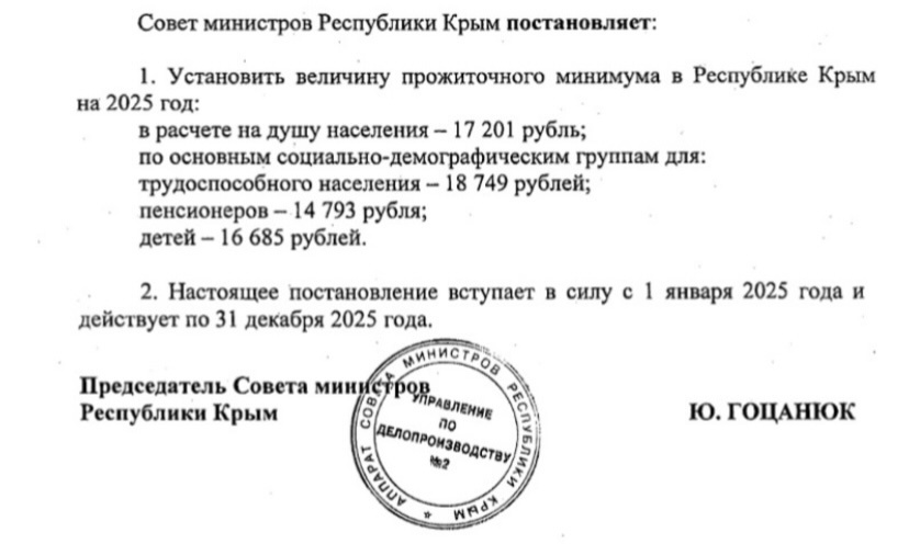 В прошлом году прожиточный минимум в Крыму на одного трудоспособного и одного ребенка составил 35 453 р.