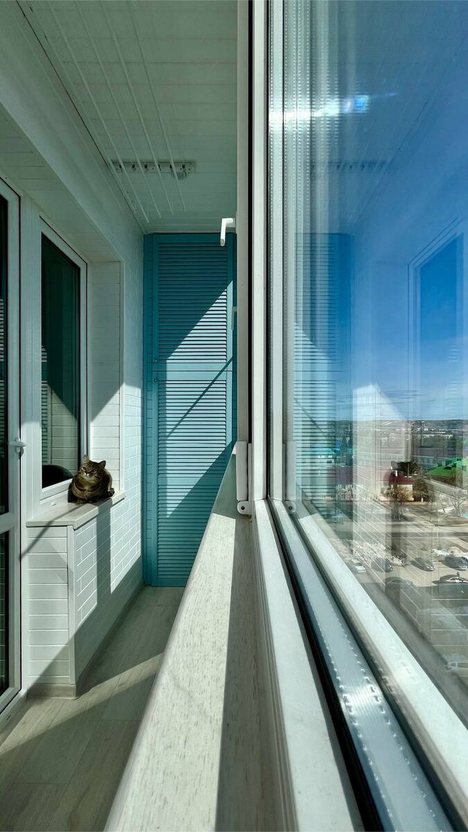Балкон может стать вашей любимой комнатой с потрясающим видом на городские крыши и горизонт. Остекление "под ключ" избавляет от всех забот: профессионалы сделают замер, проект, монтаж и чистовую отделку. Посмотрите на фото: белые стены, стильные голубые жалюзи, ламинат на полу и даже кот наслаждается уютом. Разберём по шагам, как выбрать вариант, чтобы не пожалеть. Это полный цикл работ без вашего участия. Сначала приезжают на замер, рисуют 3D-проект. Потом демонтаж старых конструкций, остекление, утепление стен, пола и потолка. Финал: покраска, ламинат, подсветка и жалюзи, как в примере. Всё чисто, готово к мебели за 7-14 дней. Подробный список работ: Гарантия 5-10 лет, материалы с сертификатами. Алюминиевый профиль - для бюджетного холодного остекления. Сдвижные рамы лёгкие, моются просто, цена от 12 000 руб. за м². Подходит для хранения вещей летом. ПВХ - золотая середина для тёплого балкона. Двойной стеклопакет держит тепло, шумоизоляция отличная. На фото именно ПВХ: огромные окна