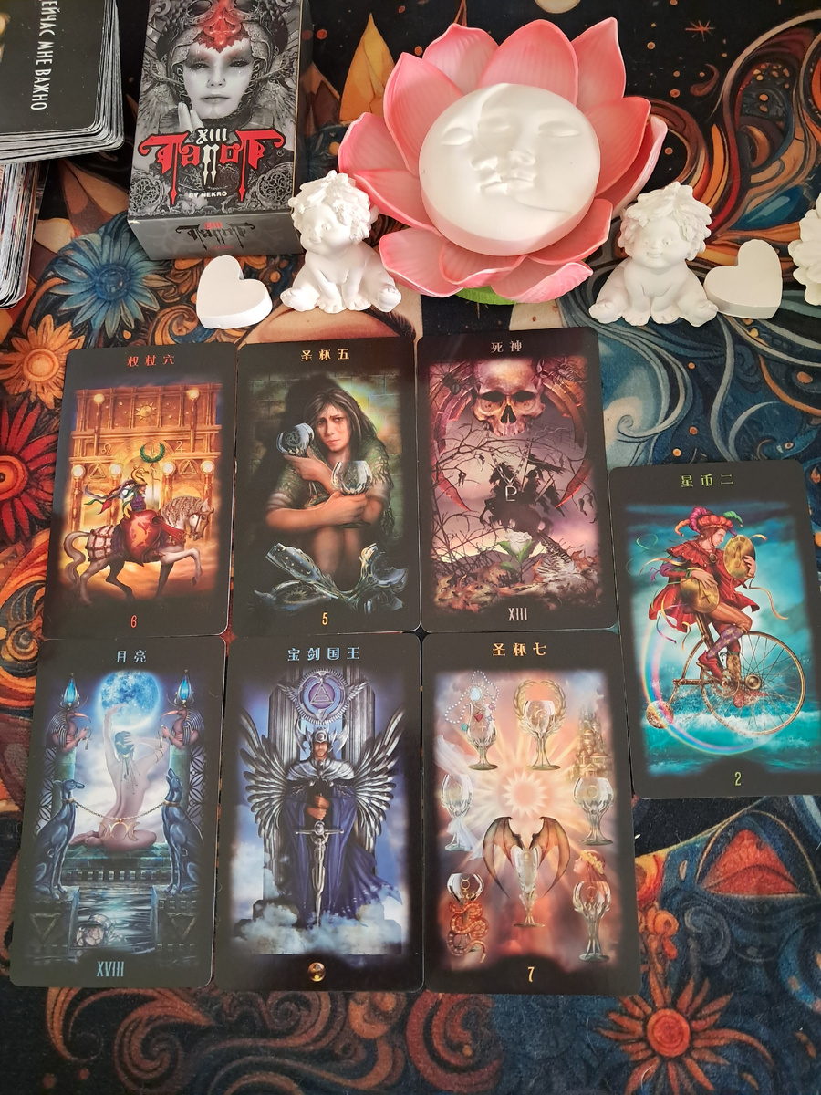 3. Смерть + Луна — Здесь важный акцент: наблюдение связано с периодом трансформации, скрытых процессов и подсознательных страхов.
