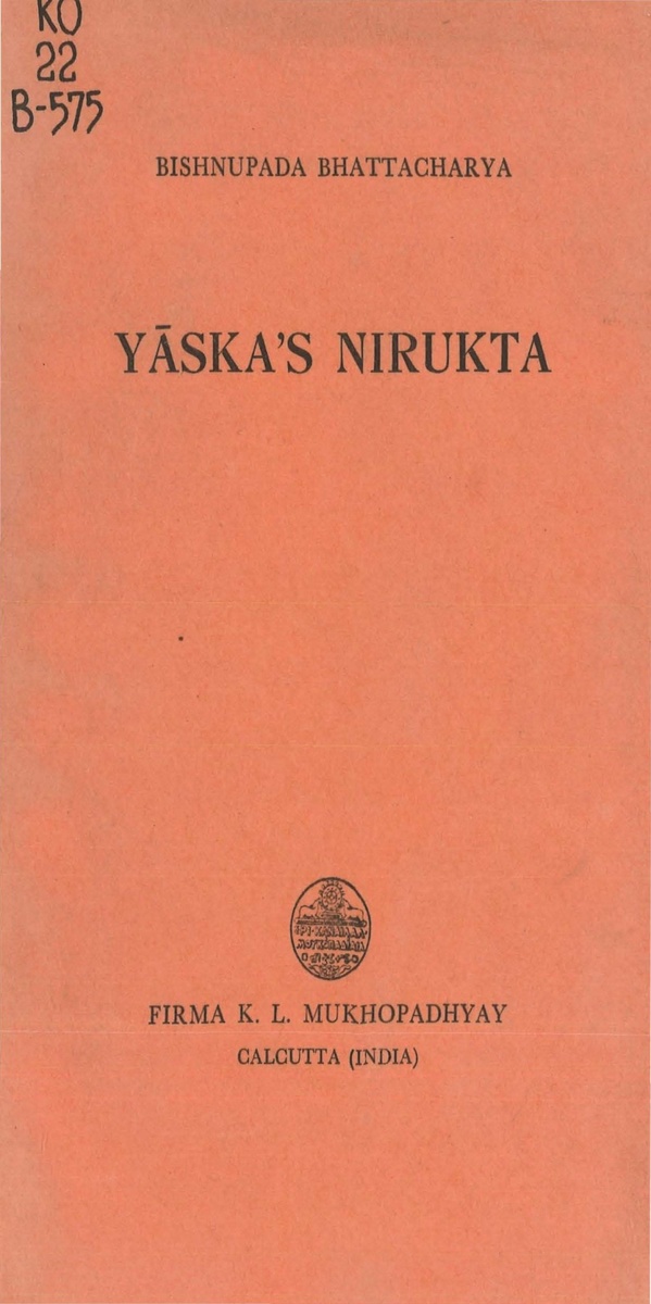 🇮🇳📖 Bhattacharya,Bishnupada Yaska's Nirukta and the science of etymology