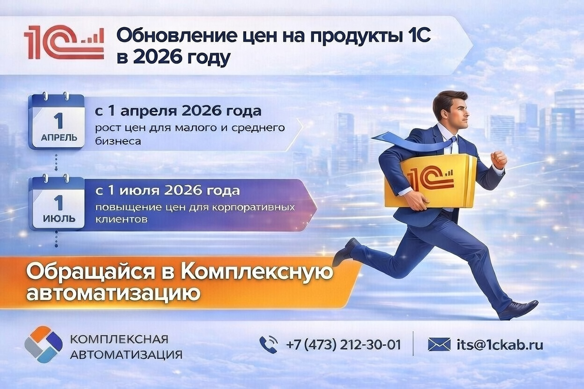 Фирма «1С» официально объявила: цены на большинство программ и лицензий «1С:Предприятие 8» и «1С:Образование» вырастут в 2026 году. Информационное письмо № 33865 от декабря 2025 года уже на сайте 1С. Повышение пройдёт в два этапа — в апреле и июле. Средний рост — около 12–14 %. Это не шутки: некоторые конфигурации прибавят десятки и даже сотни тысяч рублей. Когда именно и насколько подорожает С 1 апреля 2026 года — первый удар по малому и среднему бизнесу, бюджетникам и образованию: С 1 июля 2026 года — вторая волна для крупного бизнеса: Конкретные примеры (рекомендованные розничные цены без НДС) Разница ощутима, особенно на топовых конфигурациях. Самое важное: как зафиксировать старую цену Есть «окно возможностей»! После этих дат — только новые цены. Неотгруженные старые заявки аннулируют. Что делать прямо сейчас, чтобы не переплатить Мы поможем сэкономить ваши деньги Как официальный партнер 1С, мы готовы: Пишите или звоните за индивидуальным расчётом: 📞 +7 (473) 212-30-01 ✉ its@1c