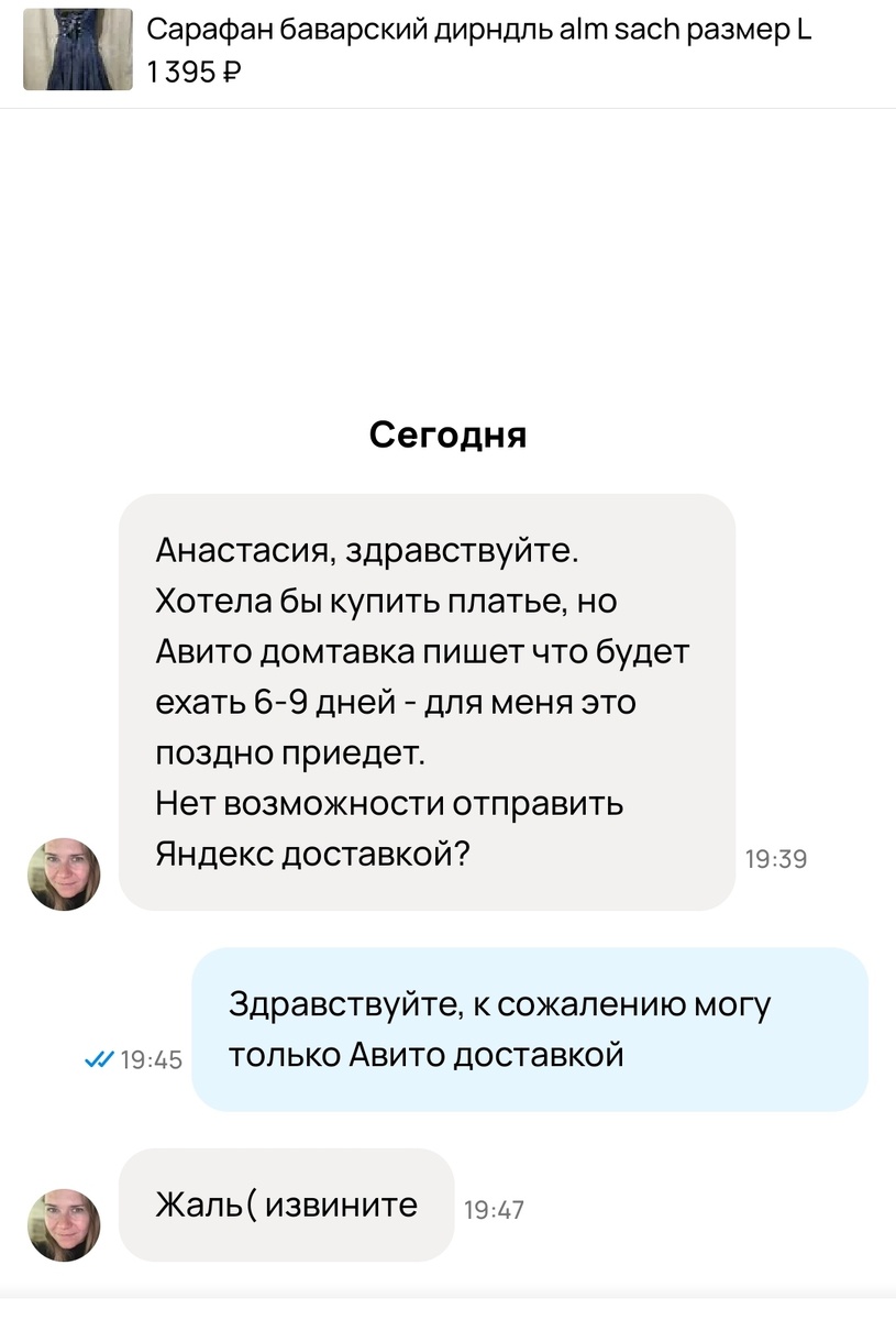 Например, очень много предложений из за дорогой доставки отправить посылку не через Авито.