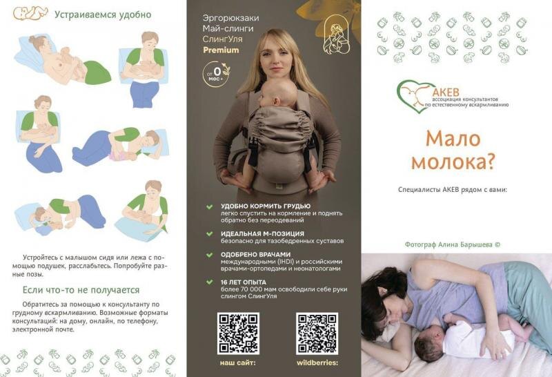 АКЕВ и российский производитель слингов "СлингУля" выпустили большой тираж буклетов для кормящих мам на животрепещущую тему "Мало молока". Подробнее - https://clck.ru/3RjAgZ