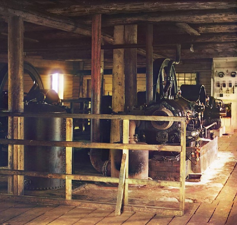 С. М. Прокудин-Горский. Машинное отделение дизельной электростанции. Река Ока 1912