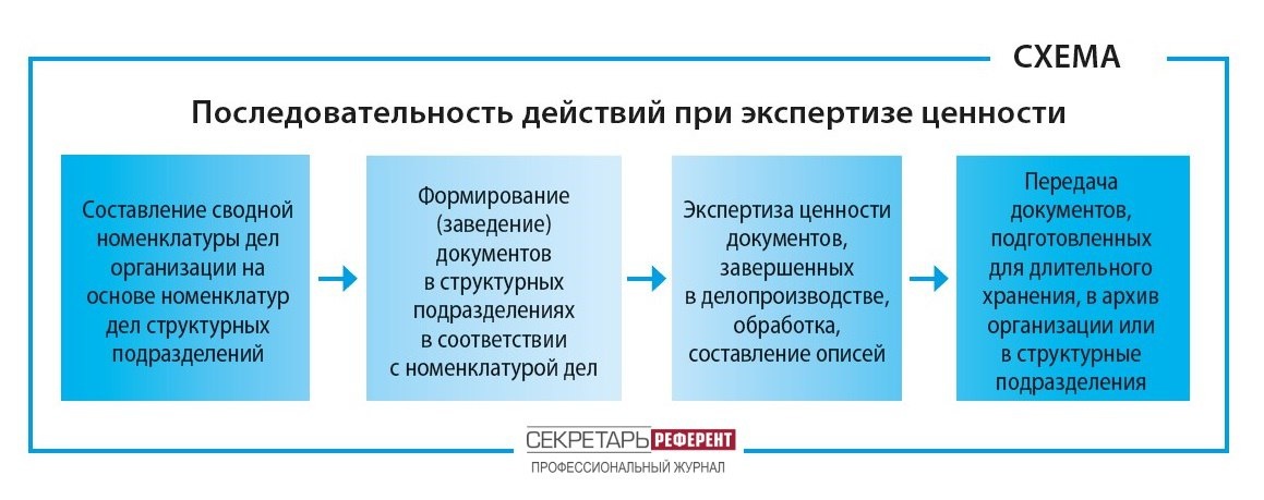Февраль – это время для проведения экспертизы ценности документов. Для качественной и оптимальной по временным и организационным затратам ЭЦ важна последовательность действий (Схема).