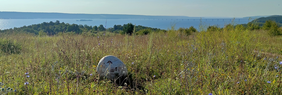 Прошла метров 300-350 по дороге, и открылся великолепный вид на Волгу и новый мост трассы М-12. С одной стороны, жаль, что не дошла сюда — было бы здорово ночевать с видом на огни моста и проезжающих машин. С другой стороны, здесь сложнее найти место, скрытое от посторонних глаз. В приложении чуть дальше на карте отмечено место для лагеря, но там дорога и есть шанс, что кто-то приедет. Я такие места не люблю. Лучше уж вид поскромнее, но 100% без ночных гостей.