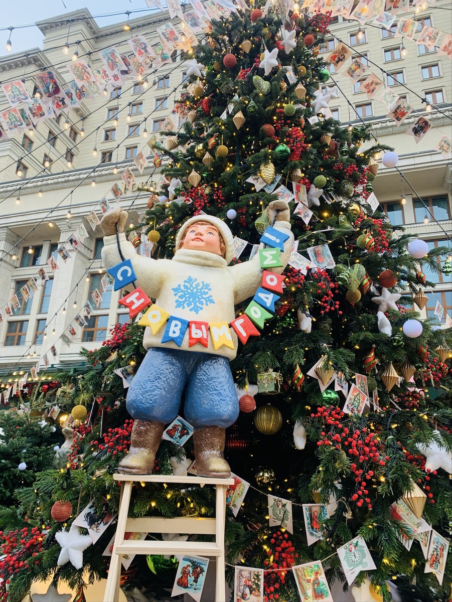 Многие отмечают, что в этом году новогодняя Москва пышная, яркая и разнообразная, как никогда. Не могу судить, правда это или нет, так как только в этом сезоне 2025-2026 удалось как следует погулять по праздничной столице. Но то, что я увидела, действительно поражает своими масштабами и безудержной фантазией. Москва просто ослепила сияющими огнями и блеском сказочных локаций. Причем все они очень разные и непохожие. Покажу, чем же удивила столица. Главная площадка празднования - это Манежная площадь и площадь Революции. В этом году они оформлены в стилистике советской новогодней игрушки. Думаю, решение это отличное - с теплом вспоминаются праздники детства с живой елкой, стеклянными игрушками, серебряным дождиком и свежим запахом хвои. Идея очень понравилась! На новогодней ярмарке продаются сувениры, в том числе и в советской тематике - елочные украшения "как раньше", конфеты, в торговых палатках стараются поддерживать общий стиль. Цены, конечно, кусаются - ничего удивительного для гла