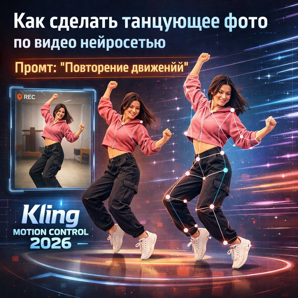 Как сделать танцующее фото по видео нейросетью - промт повторения движений, Kling Motion control 2026