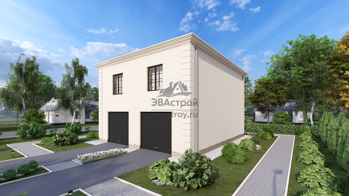 Номер проекта: 108-00 (П82.1) Разделы проекта: Архитектурный и Конструктивный разделы Узнать о проекте больше можно на сайте evastroy.ru или по телефону +7 (495) 175-30-40 Трехместный гараж с надстройкой (192 м2) — очень функциональное строение. Это и вместительный паркинг, удобный и безопасный, и прекрасное хранилище для мелкой техники и вещей, а второй этаж может пригодиться в качестве гостевого пространства или места проживания персонала. Такая постройка отлично дополнит большой трехэтажный дом из проекта 107–99. Первый этаж целиком занимает автомобильная стоянка. Для каждой машины предусмотрены отдельные ворота, также имеется отдельный вход с участка. Освещение выполнено в виде двух узких окон, одно из которых располагается над боковыми воротами. В углу гаража находится широкая и удобная лестница с тремя маршами. Кроме того, предусмотрена раковина и отопительное устройство. На втором этаже две большие комнаты 40 м2 и 49 м2 с естественным освещением. Хозяева могут использовать их по