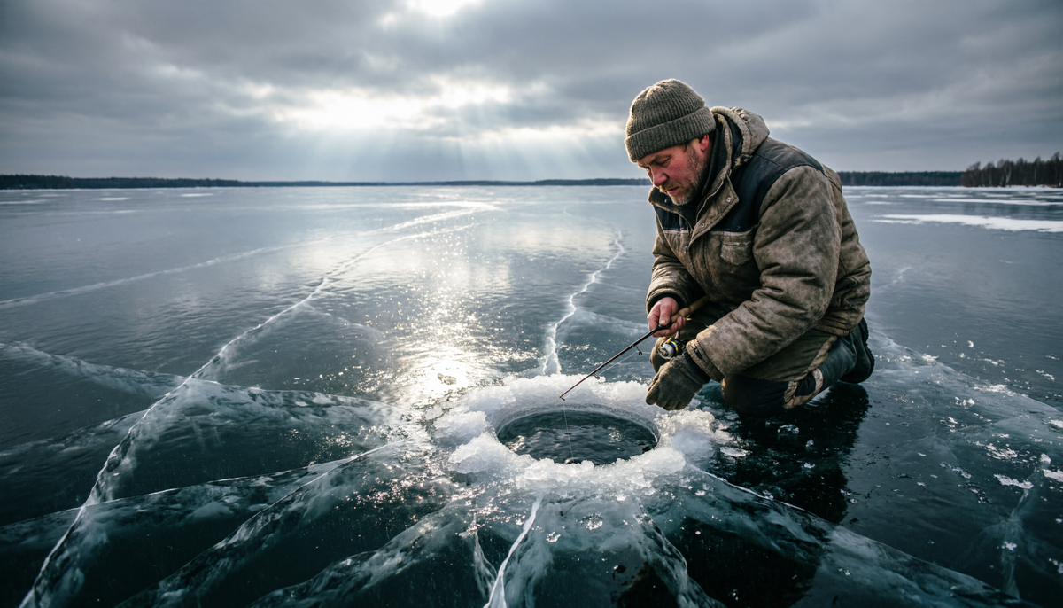 Вы выезжаете на озеро в первых числах марта. Солнце пригревает, снег подтаивает, лёд блестит как стекло. Всё кажется идеальным для рыбалки. Но именно в эти дни под льдом творится катастрофа: верхний слой тает, нижний остаётся мёрзлым, и лёд превращается в хрупкую скорлупу. Каждый год в марте десятки рыбаков проваливаются под лёд. Многие не всплывают. При этом мало кто знает: формально зимняя рыбалка в некоторых регионах заканчивается не с ледоставом, а по календарю — и нарушение этого срока грозит штрафом. Разбираем, как распознать смертельно опасный лёд и не нарушить закон в последние дни зимнего сезона.