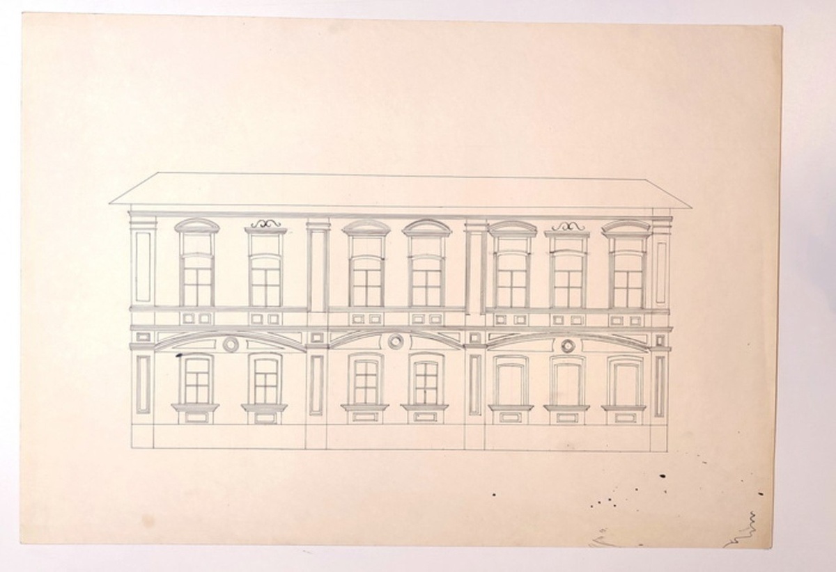 Главный и боковой фасады дома (адрес не указан) - и что это за здание как вы думаете? Конец 1980-х гг. Источник: Музей архитектуры и дизайна Федерального государственного бюджетного образовательного учреждения высшего образования "Уральский государственный архитектурно-художественный университет имени Н.С. Алфёрова" https://vk.cc/cUhD9X