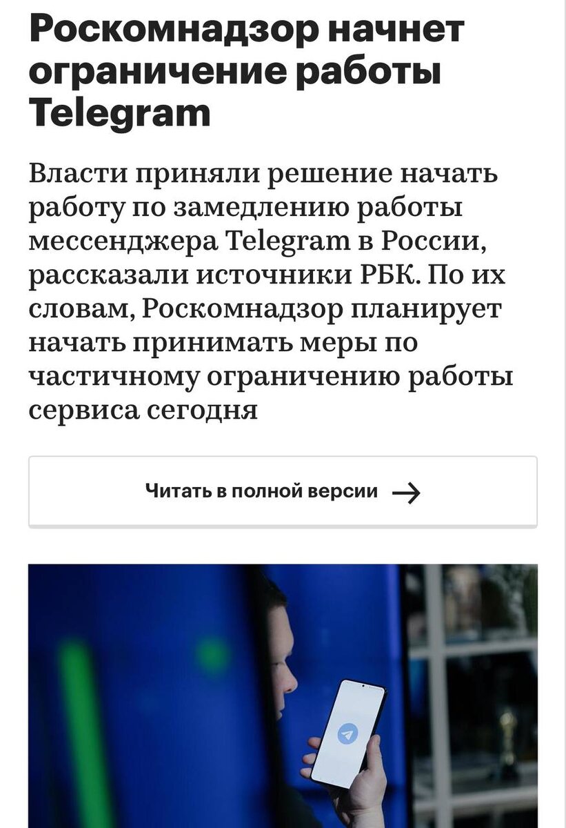 В РБК сообщили, что РКН начнёт ограничивать мессенджер уже 10 февраля.