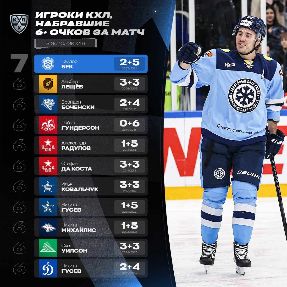 Никто никогда не набирал 7 очков за игру КХЛ. До сегодняшнего дня.