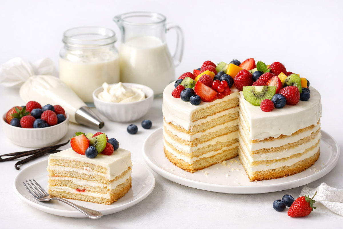 Есть торты, которые выглядят дорого, а по ощущениям делаются почти без усилий. «Молочная девочка» как раз из таких, особенно когда я выбираю лёгкий крем на йогурте и добавляю фрукты. В итоге получается свежий, нежный торт без тяжёлого послевкусия. И самое удобное – его реально собрать заранее и убрать в морозилку, а потом достать к нужному дню.