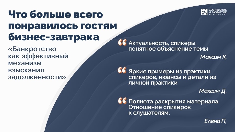 Очное мероприятие на тему банкротства должника вызвало бум позитивных отзывов.