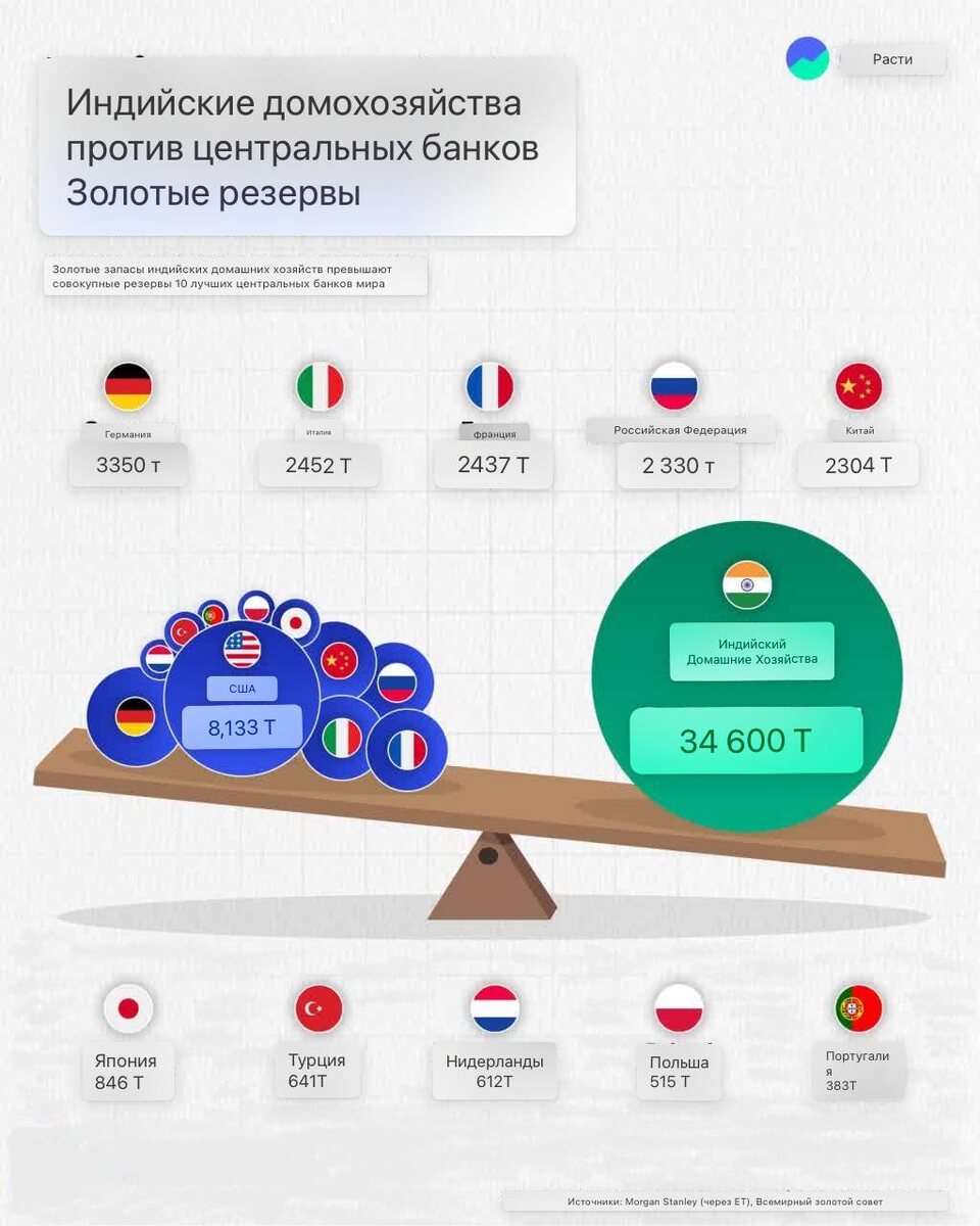 🇮🇳🌕ЗОЛОТЫЕ ЗАПАСЫ ИНДИЙСКИХ ДОМОХОЗЯЙСТВ превышают сумму резервов ТОП-10 ЦЕНТРАЛЬНЫХ БАНКОВ МИРА.