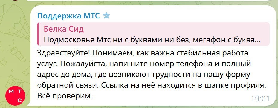 И тут внезапный МТС предлагает, я так понимаю, задать этот вопрос их поддержке. Серьезно, правда?) Вот прям у поддержки МТС спросить пошто телега не едет да веселые движущиеся картинки полтора года не показывают без бубнов с костылями? И шо, починят? Просто обратиться в поддержку надо было?)