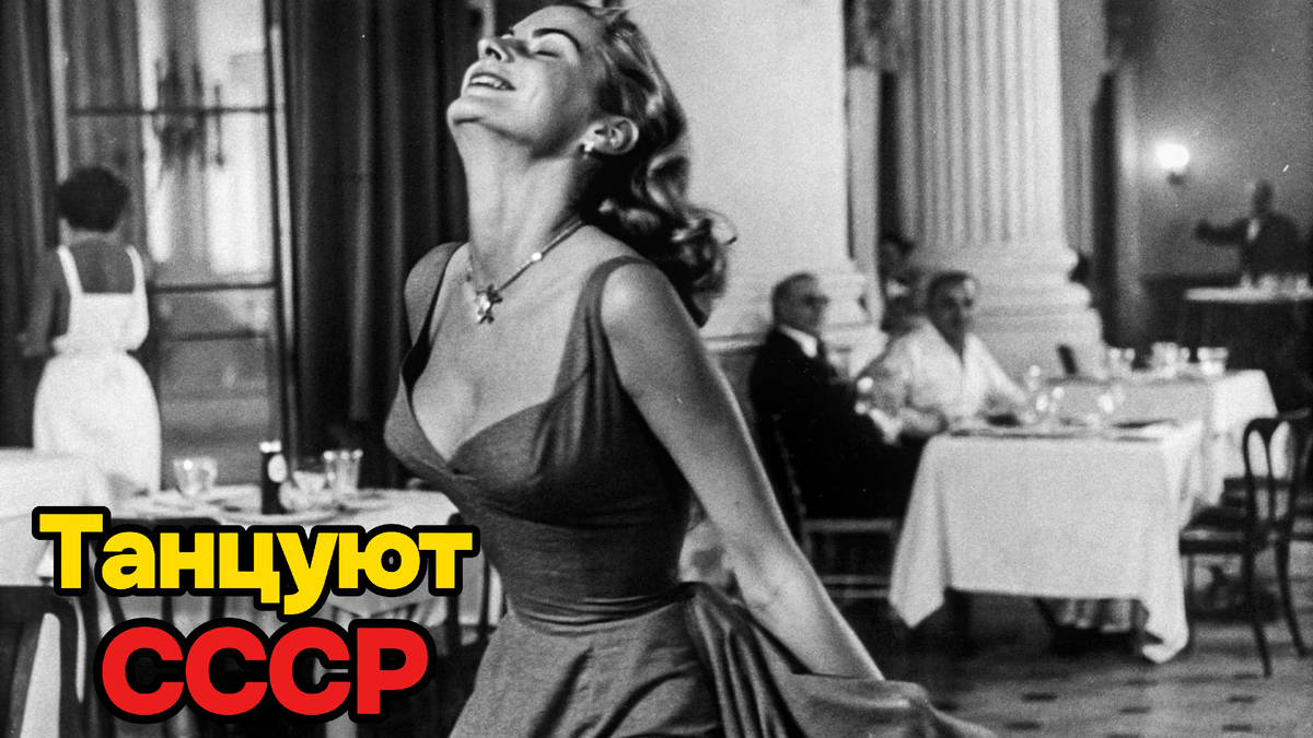 Это уже другой уровень - сцена, софиты, вечернее черное платье с открытыми плечами. Девушка явно выступает, но посмотрите на её лицо! Та же открытая улыбка, то же наслаждение. Она не напряжена, не старается произвести впечатление - она просто танцует. Платье кружится, жемчужные серьги поблескивают. Классическая советская красавица на сцене. Но что меня зацепило - в её позе нет этой искусственной театральности. Знаете, когда артист играет радость, а не чувствует её? Здесь другое. Она кайфует от того, что делает. И зрители это чувствуют - потому что счастье заразительно. Оно передается через экран времени даже нам, сидящим с телефонами в руках.