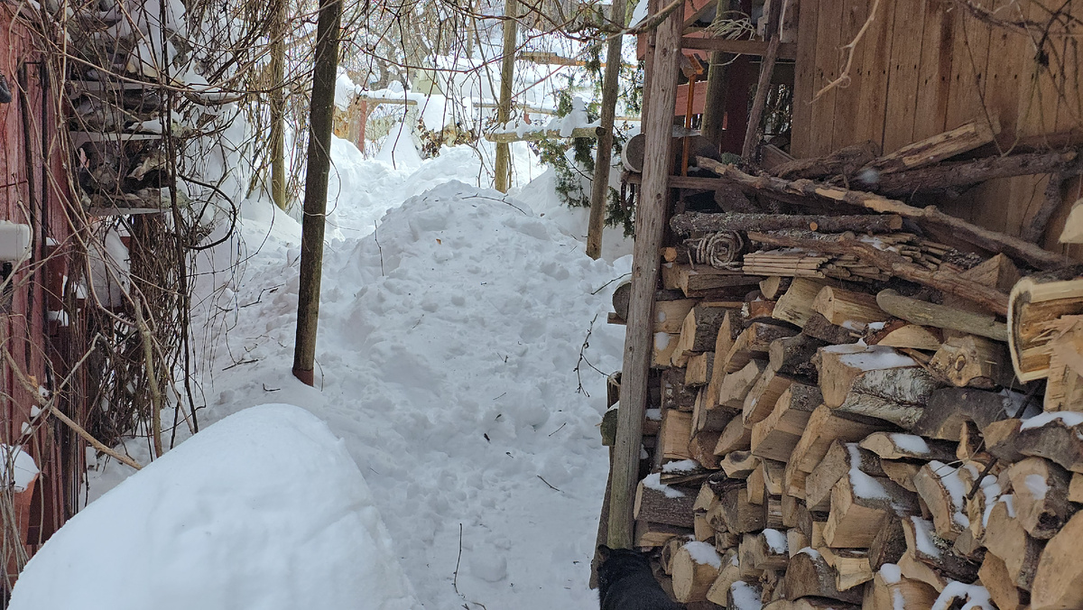 Очередной бездельный конкурс для Артёма: надо прочистить проход к крыльцу Избушки от снега, который Ирина Александровна скинула с крыши. Затея на пять минут!