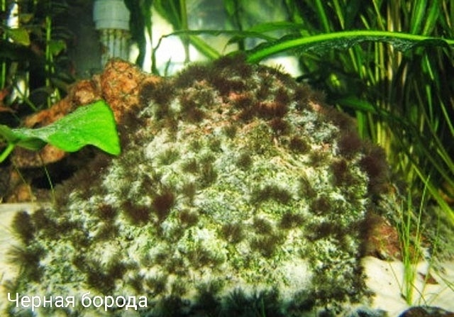 Водоросли выглядят как пучки мягких нитей, похожих на маленькие кустики. Цвет образований колеблется от серо-зеленого до черного. Сначала отдельные пучки нитей появляются на краю листовой пластины, затем окаймляют ее полностью и наконец, разрастаются по всей поверхности листа. Распространение происходит быстро. Наряду с растениями водоросль захватывает субстрат и твердые поверхности аквариума. Предпочитает места с сильным течением.