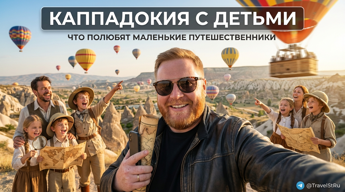 Утро в Каппадокии начинается не с кофе, а с того самого момента, когда ребёнок выскакивает на балкон и замирает: над долиной медленно выплывают воздушные шары. Их много, они разноцветные, и кажется, что кто-то высыпал в небо огромный пакет конфет, а потом аккуратно развесил. Взрослый в этот момент обычно пытается вспомнить, где телефон и почему он опять на зарядке в другой комнате, а ребёнок уже строит план: «Сейчас мы туда, потом туда, а потом вон в ту пещеру». И ты понимаешь, что Каппадокия с детьми работает иначе, чем «просто Каппадокия»: здесь всё превращается в квест, где каждый поворот тропы обещает новые странные камни, тайные ходы и виды, которые выглядят как декорации к фильму, но это почему-то реальность.