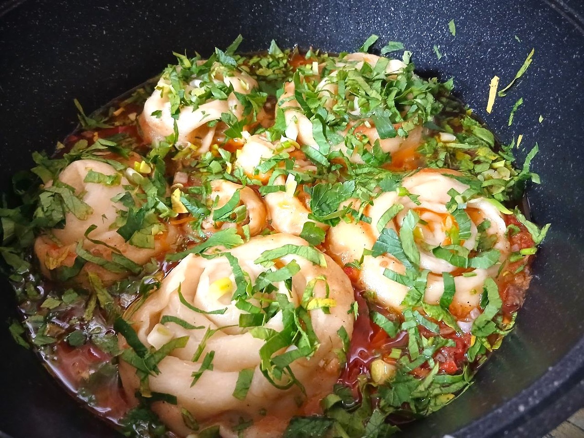 Рецепт штрудлей в овощном соусе (с мясной начинкой).