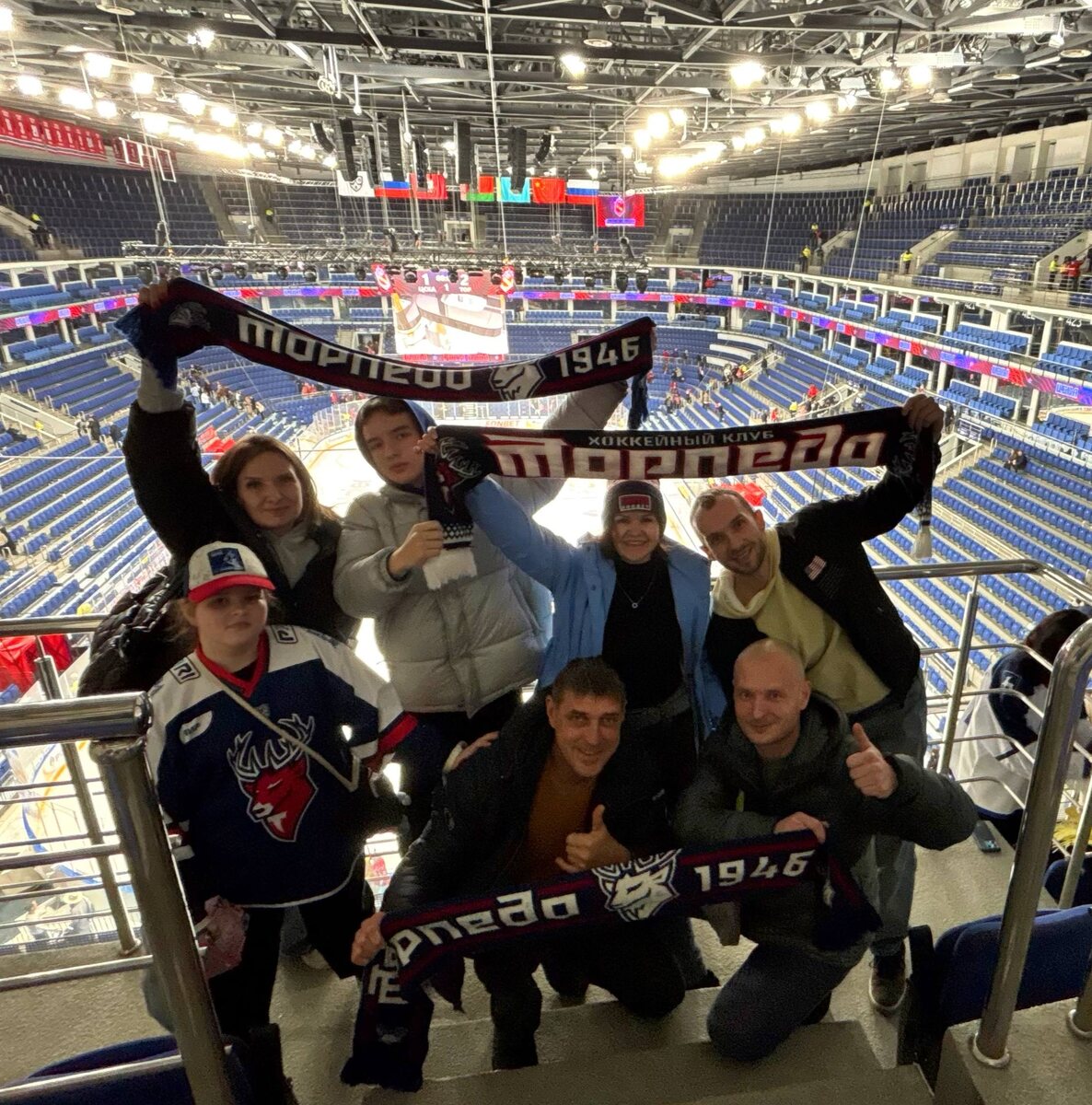 ЦСКА - Торпедо 1️⃣:2️⃣ На самом деле это прям очень классно, особенно если взять обычные будни «дом-работа-дом» 🙂 Если ни разу не ходили, то советую, много положительных эмоций получите, услышите как всех заряжают болельщики и как классно и виртуозно хоккеисты делают красивую и бурную игру 🤩 [еще может драку на льду сможете увидеть, тоже почему-то классно выглядит] В общем это классно мероприятие, которое насыщает новыми эмоциями. А если идти на матч в Москве, то это еще и дешево! К примеру в Москве стоит 400 рублей билет на матч, а в Нижнем Новгороде 2500 рублей 😨 И если цена на билеты хорошие, то на еду дорого прям. 0,5 лимонада или воды от 260 рублей, хот-дог или бургер от 370 рублей 😱 В общем я голодный остался, хотя есть сильно хотел 😂 P.s. Когда обратно ехали в метро родственники заметили что через темное стекло у Яны цвет лица не меняется, а я стал похож на афроамериканца, сфотографировали нас и по итогу я все время ехал и не понимал почему надо мной они смеются 😆