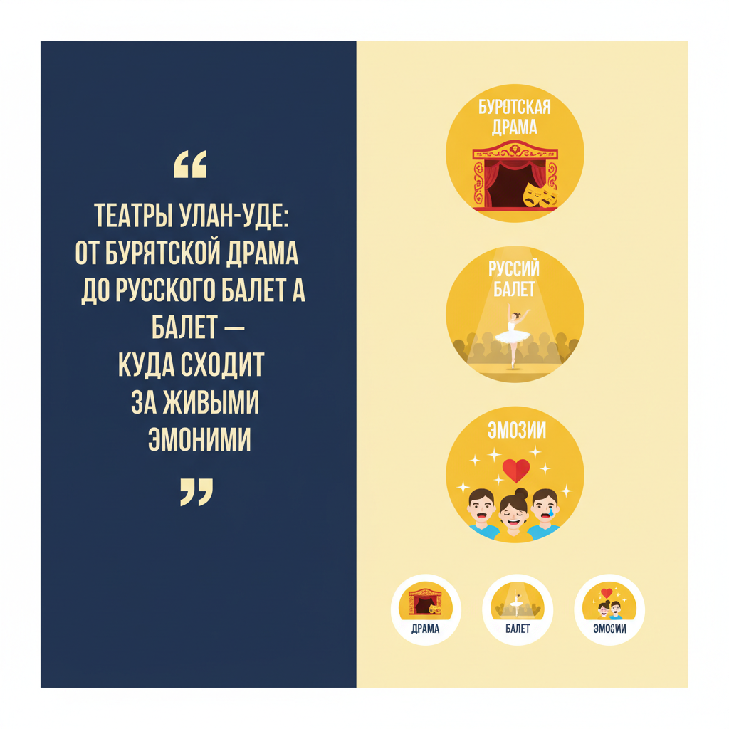 Когда я впервые попал в театр оперы и балета в Улан-Удэ, я ожидал провинциальной скромности. Как же я ошибался! Зал, полный, аншлаг, оркестр настраивает инструменты — и вот уже занавес открывается на спектакле, который не стыдно показать в столице. Оказалось, что театральная жизнь здесь бьёт ключом, соединяя европейскую классику, русскую драму и уникальную бурятскую культуру. Рассказываю, куда идти, чтобы получить незабываемые впечатления. 1. Флагман и символ культуры: Бурятский театр оперы и балета им. Г. Цыдынжапова