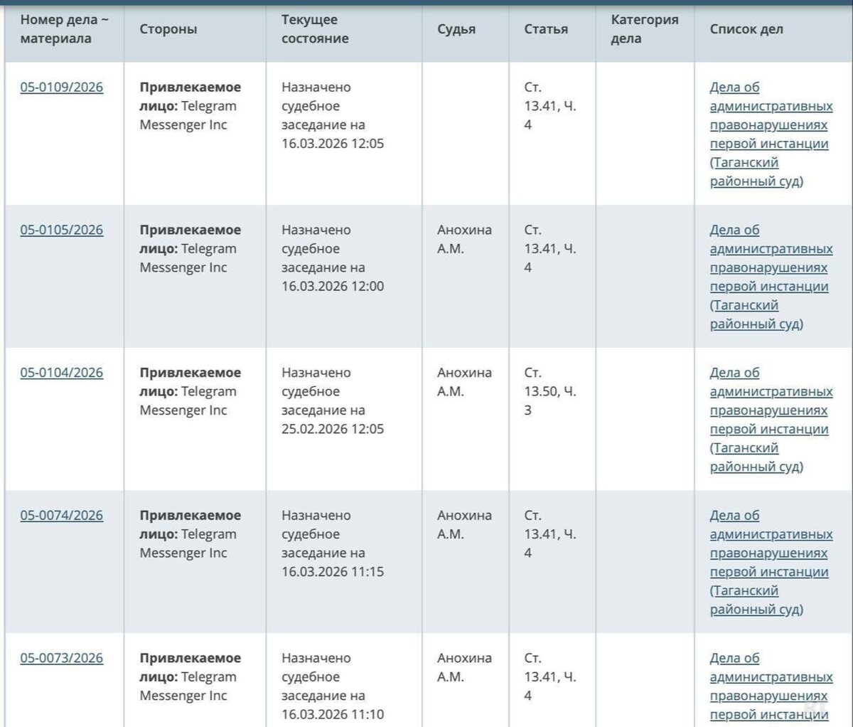 Telegram грозят штрафы до 64 миллионов рублей по восьми административным протоколам