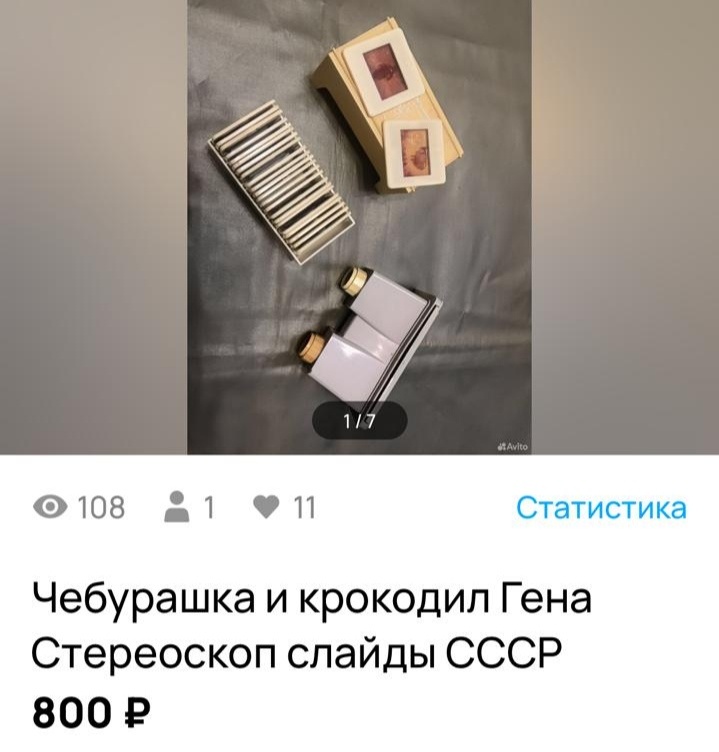 Набор диапозитивов назывался " Ищу крокодила Гену". Очень популярной была в 70-е история про Чебурашку и его друга.