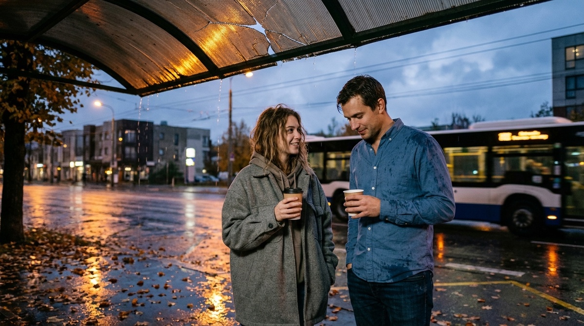 — Мне выходить. — Она поднялась, поправила шарф. Наклонилась ко мне. — Знаете, я бы всё отдала, чтобы опоздать на тот автобус ещё раз. Но теперь у нас место лучше любого ресторана. Остановка с дырявым козырьком, ужасный кофе и двадцать лет.