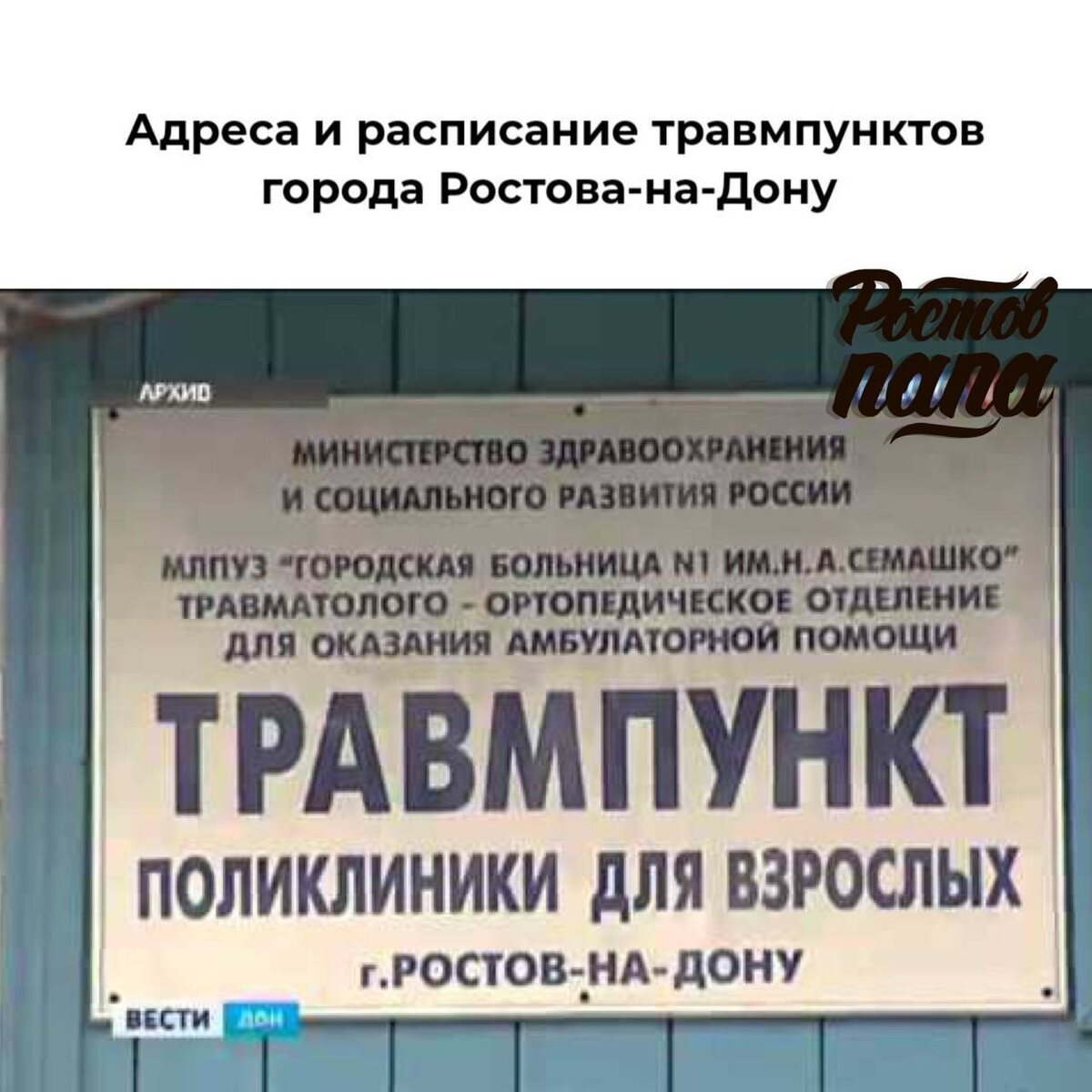 ! Напоминаем адреса и телефоны травмпунктов в Ростове и правила безопасности! 🩹 Травмпункты Ростова-на-Дону 👨🦰 Взрослые (24/7) 🏥 Городская поликлиника №1 📍 ул. Сержантова, 3 📞 +7 863 252‑04‑18 Принимают жителей Первомайского района 🏥 Травматологический пункт 📍 пр. Богатяновский Спуск, 27 📞 +7 863 263‑40‑23 Принимают жителей Кировского и Пролетарского районов 🏥 Городская БСМП‑2 📍 ул. Бодрая, 88/35 📞 +7 863 233‑05‑58 Для жителей Ворошиловского района. 🏥 ЦГБ им. Н.А. Семашко 📍 Ворошиловский проспект, 105 Могут обратиться жители Октябрьского района 🏥 Городская клиническая больница №20 (травмпункт) 📍 просп. Коммунистический, 39/39а 📞 +7 863 271‑96‑67 / +7 863 271‑99‑65 Для жителей Советского и Железнодорожного районов 👶 Детские (дневное дежурство) 🏥 Детский травмпункт Кировского района 📍 пр. Богатяновский Спуск, 27 ⏰ 09:00 – 20:00 ⚠️ При серьёзных травмах ребёнка лучше сразу ехать в детскую областную больницу или вызвать скорую. 💡 Советы безопасности: ▪️ Держ
