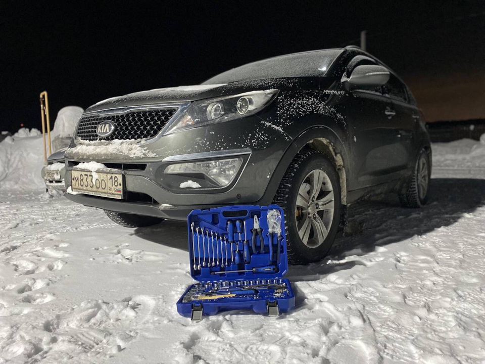 Все большой и пламенный привет друзья и подписчики, всех обнял, всем добра пожелал🤝🙏 Давненько не писал про свой Kia Sportage 3, хотя много о чем необходимо выложить, но пока не добрался до сервиса, заваливает снегом не слабо наш город. По этому расскажу о новом жителе в моем багажнике 😁😂. Наконец то приобрел в авто хороший и большой набор инструментов в котором в принципе есть все необходимое для запланированного и не запланированного ремонта, авто же не молодеет😅 Выбор свой сделал в пользу фирмы КОБАЛЬТ, причина в следующем, в сервисе у друзей подобные наборы, и вопросов к качеству у них нет, инструменты полностью выполняют свое предназначение и пока не ломались, а так как я последнее время начал заниматься авто самостоятельно, по этому набор мне был нужен обязательно Да кстати заказывал 👉тут👈 Теперь давайте расскажу по подробнее о новом наборе — это универсальный набор инструментов КОБАЛЬТ 1/4″ и 1/2″ на 72 предмета. Хороший фон получился рядом с Грутами😁 Состав набора след