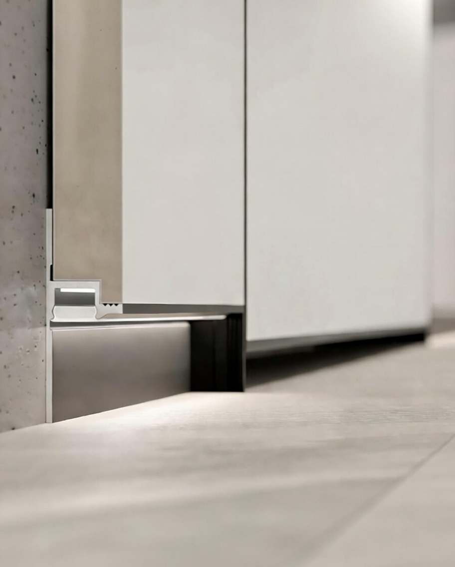 Скрытый алюминиевый плинтус. Обычный и со встроенной подсветкой