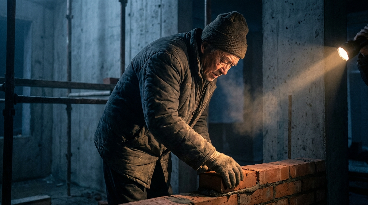 Григорий прошёл мимо бытовок, мимо штабелей арматуры, мимо бетономешалки, которая молчала по ночам. Фонарь выхватывал из темноты его силуэт – невысокий, согнутый, медленный. Пальцы на руках не разгибались до конца – суставы застыли дугой после тысяч кирпичей, уложенных за жизнь. Кожа на ладонях – толстая, цвета старой кожи.