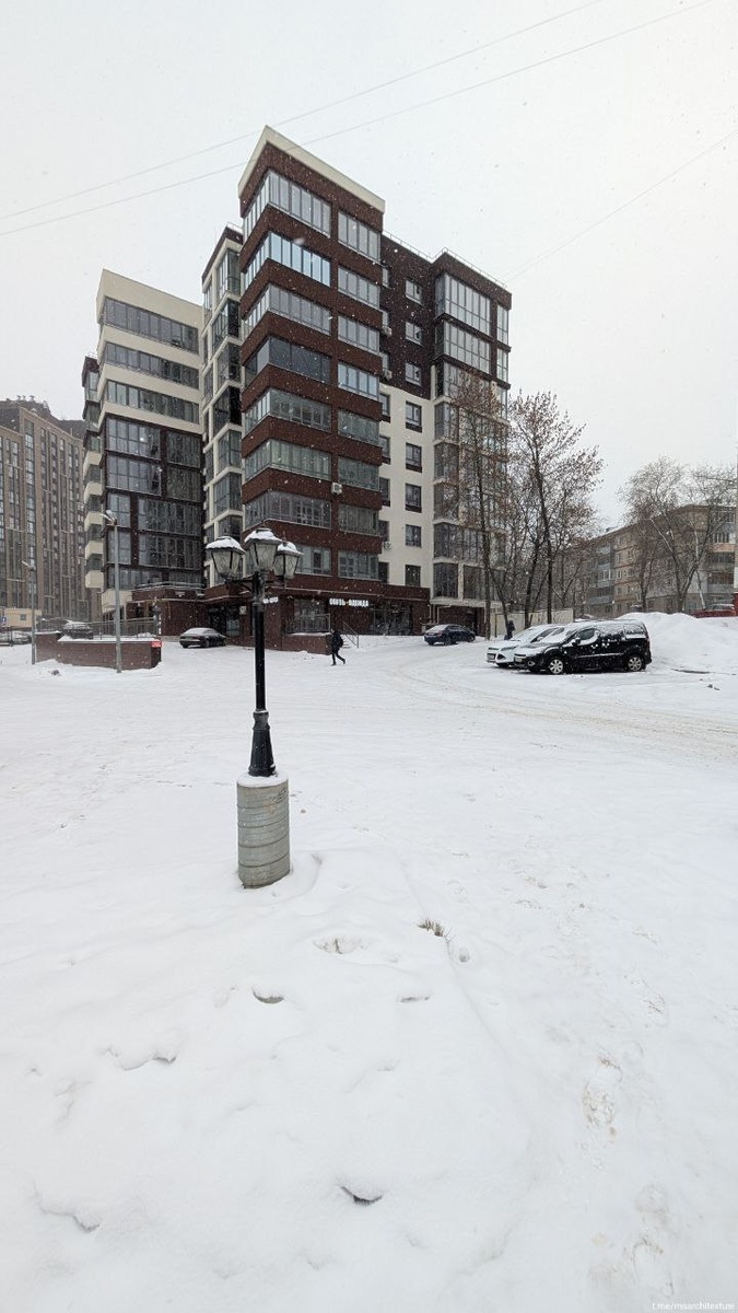 Сегодня смотрим на современный девелопмент в Иваново, дом сдан в 2023 году. Дом позиционируется как клубный дом бизнес-класса, но, увы, тут совсем нет благоустройства вокруг, а с перепадом высот также поработали подпорными стенками (это плохо) с решетками наверху. Архитектура никакая, но радуемся, что не отталкивающая. 📱 Архитекстура #Иваново #ЖК