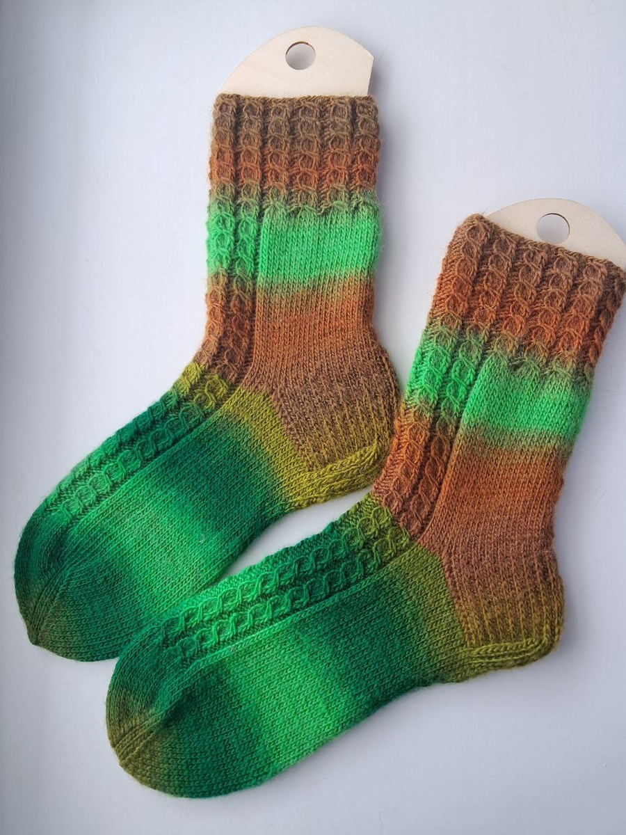 Носки из носочной прочной пряжи по составу шерсть 75% полиамид 25%, связаны спицами. Работа ручная. Размер 36-38. В одном размере, без повтора.