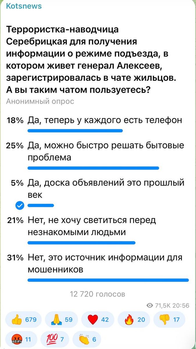 ⚡️⚡️⚡️ 31 процент подписчиков не пользуются домовыми чатами, так как считают их базой для мошенников. Граждане! Соблюдайте бдительность! И не пишите в общественных чатах то, что враг может использовать в своих интересах.