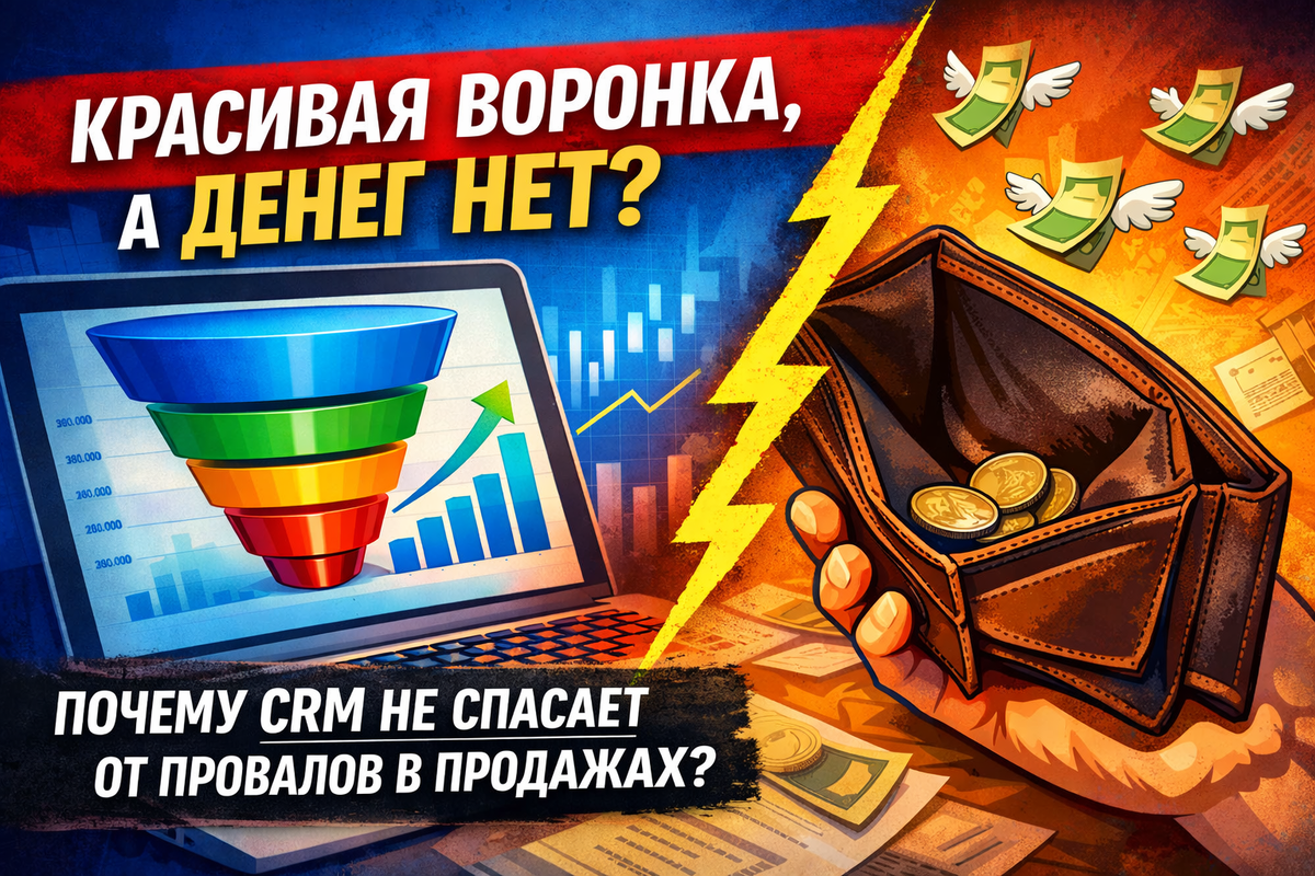 Во многих компаниях CRM выглядит идеально: этапы выстроены логично, сделки распределены по статусам, конверсии считаются автоматически. Руководитель открывает отчёт и видит: система работает. Но есть одна проблема — деньги при этом не растут. И это не субъективное ощущение. По данным исследований Gartner и McKinsey, до 70% CRM-проектов не дают ожидаемого финансового эффекта, несмотря на корректную техническую настройку. Причина почти всегда одна и та же: воронка отражает процесс внутри компании, а не реальное поведение клиента. Когда «движение по этапам» не равно движению к оплате В большинстве CRM этапы формулируются так: «Создана сделка», «Назначена встреча», «Подготовлено КП», «Ожидаем решение». С точки зрения отчёта — всё логично. С точки зрения клиента — это вообще ничего не значит. В одном из проектов (B2B-услуги, средний чек ~300 тыс.) мы увидели показательный момент: конверсия из «КП отправлено» в «Сделка выиграна» по отчёту была 32%. На бумаге — отличный результат. Но при дета