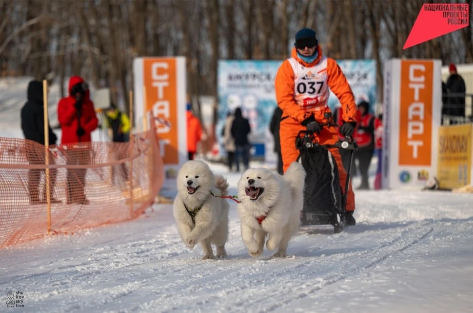 "! В Хабаровске на лыжном комплексе «Нагорный» завершилась гонка на собачьих упряжках — 33 взрослых, юниоры и даже малыши от 1 года покоряли снежные трассы в спринтах с 1, 2, 4 и 6 собаками. Лучшими стали Антон Панов и Ольга Рыжкова в лыжах с одной собакой, Юлия Юнтюк — в нарте на двух, Дарья Куцевой — на четырех, а Александр Шевцов — на шести. ➡️ Подписаться - @KHV_NEWS