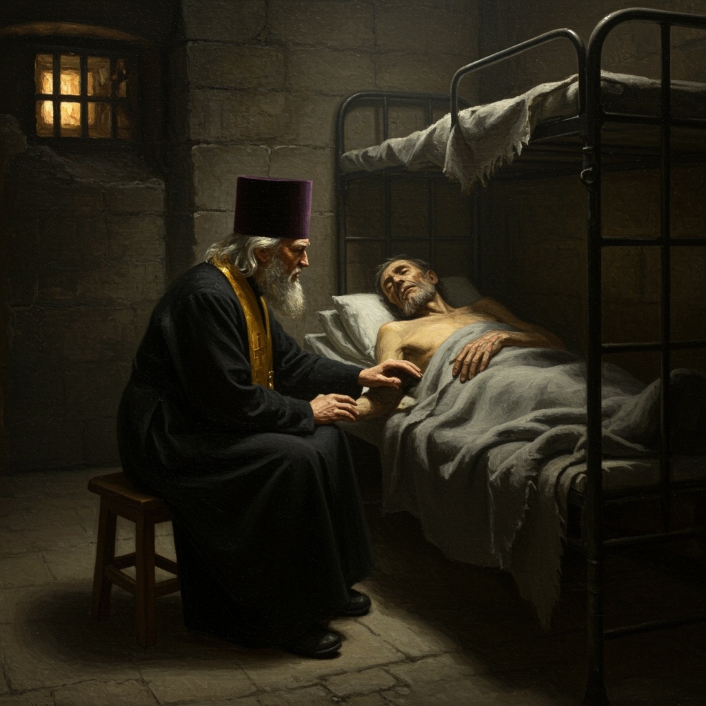 Под епитрахилью раздался звук — сдавленный, хриплый. Плакал. Этот страшный человек, которого боялись конвоиры, которого сторонились даже свои, — плакал, как ребёнок.