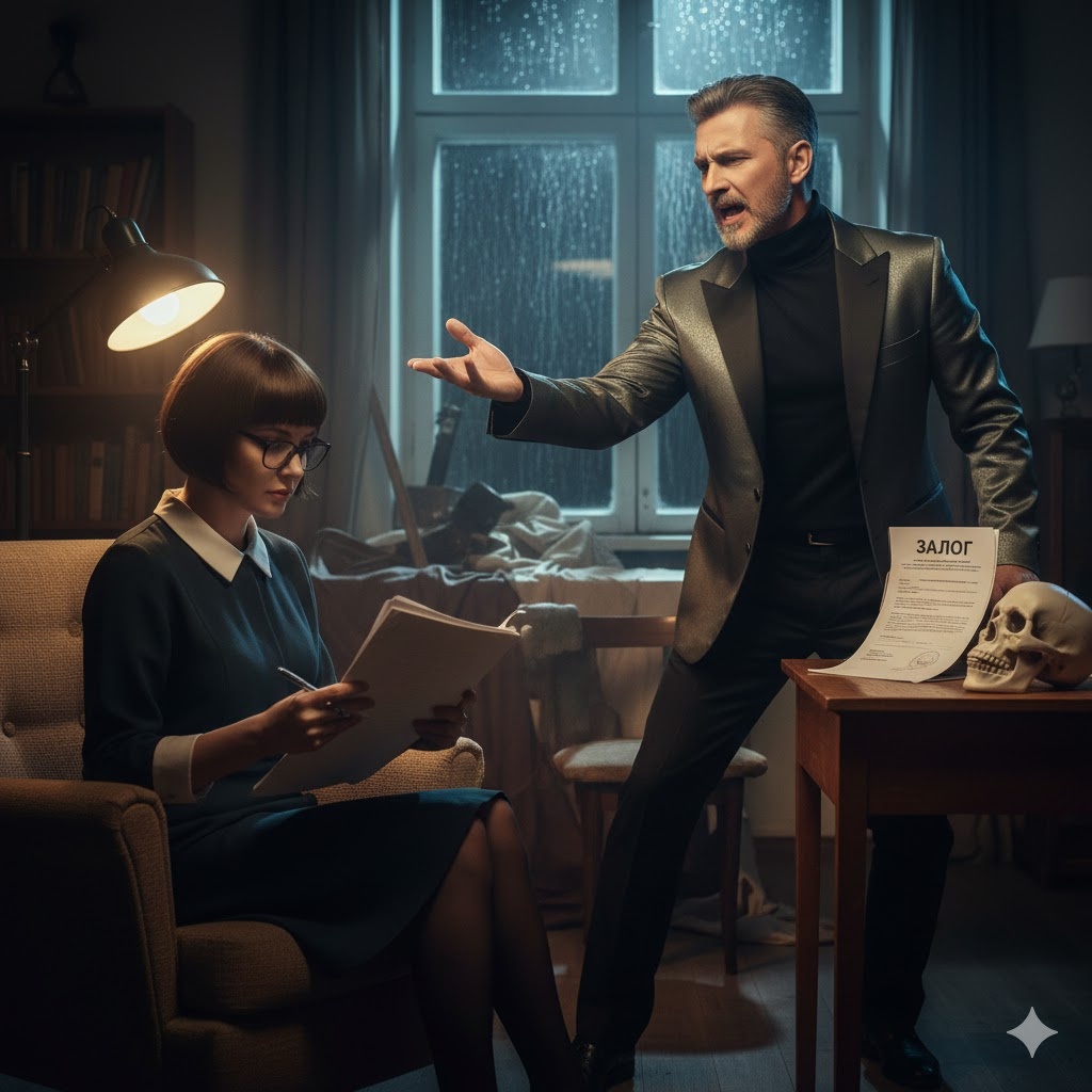 — Я помогу вам прижать его так, что он отдаст всё до копейки. Но вы оставите квартиру мне. Я напишу вам сценарий, по которому он сам приползёт к вам с деньгами. Вы ведь знаете, что актёры — самые трусливые люди на свете, когда дело доходит до настоящей драмы?