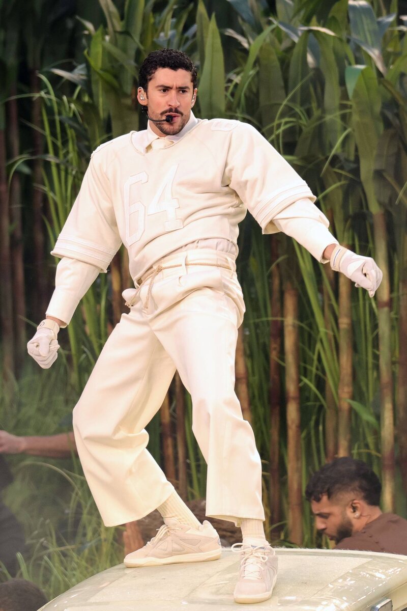В Калифорнии прошло одно из самых громких музыкальных событий года - шоу в перерыве Супербоула, хедлайнером которого в этом году стал певец из Пуэрто-Рико Бэд Банни. Для выступления артист неожиданно выбрал специально созданный для него образ от Zara. Скорее всего, таким образом Бэд Банни отдал дань испанскому бренду (большинство своих песен он исполняет на испанском), а также намеренно отказался от люкса в пользу более народной и доступной марки. Полностью кремовый образ дополняли перчатки и часы Royal Oak от Audemars Piguet. Ещё одной звездой вечера стала Леди Гага, которая исполнила свой хит Die With a Smile. Для выхода певица выбрала кастомный образ Luar, созданный дизайнером Раулем Лопесом. Вдохновением послужила эстетика сальсы и карибской культуры - платье должно было буквально жить в движении. Нежно-голубой цвет наряда отсылал к историческому флагу Пуэрто-Рико 1895 года, а завершали образ брошь в форме национального цветка Пуэрто-Рико и украшения Chopard. К выступлению также пр