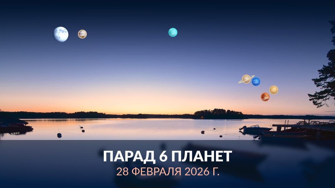 28 февраля 2026 года шесть планет будут видны на вечернем небе вскоре после заката: Меркурий, Венера, Юпитер, Сатурн, Уран и Нептун